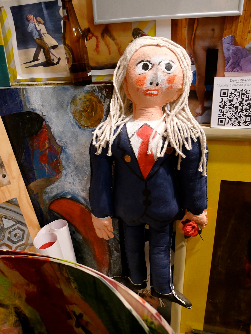 Erik Heynes的《哥白尼日心说》是一件小型的装置作品,大理石质感的圆盘上建起简单的美术馆模型,墙上还饰有馆藏毕加索的剪贴;一个穿着保安制服的小人在中心的门中徘徊,孤寂的身影让整件作品的呈现诗意而迷人。这件作品背后是他担任守卫21年来对艺术创作的思索:他的作品一度受1970、1980年代的观念主义影响,擅长玩晦涩的隐喻和文字游戏。为人父之后,Erik希望自己的艺术能在与成人产生共鸣的同时,也能让儿童看懂,产生兴趣,由此逐渐地改变了创作方向。在固定岗位上孤独的守卫,就像哥白尼日心说中的太阳,整个美术馆的展厅都在围绕他转动。