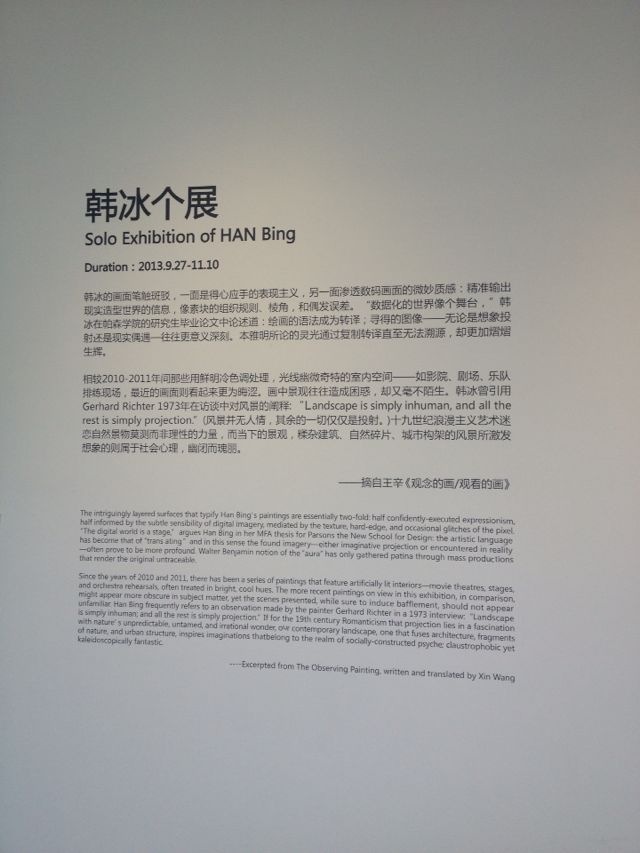 Excerpt translated for Han Bing‘s solo exhibition wall text: